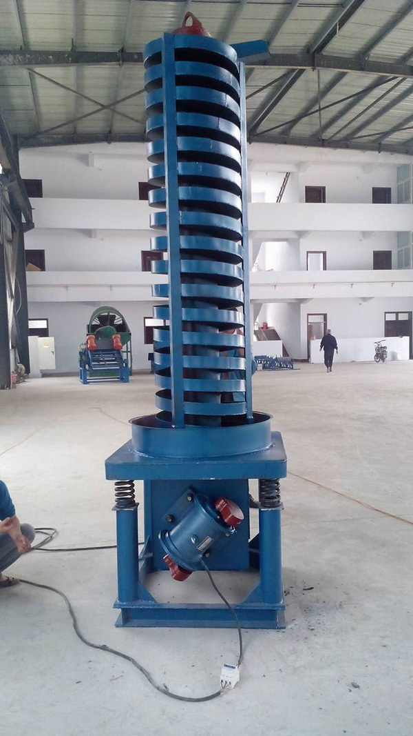 DZC系列垂直振動(dòng)提升機(jī)采用振動(dòng)電機(jī)作振動(dòng)源,兩臺(tái)振動(dòng)電機(jī)對(duì)稱(chēng)交叉安裝,并做相反方向自同步旋轉(zhuǎn),利用兩振動(dòng)電機(jī)的合成振幅,將物料沿螺旋輸送槽向上輸送,從而完成物料的向上(或向下)輸送作業(yè)。物料被拋起時(shí)與空氣充分接觸,還可以起到散熱冷卻的作用。該提升機(jī)有分開(kāi)槽式、封閉式兩種結(jié)構(gòu),可作為各行業(yè)中,小顆粒物料的垂直輸送之用,亦可根據(jù)不同工藝的要求進(jìn)行特殊設(shè)計(jì)。